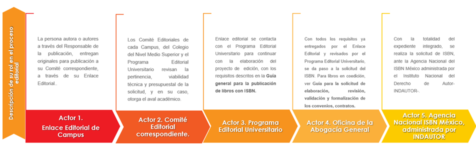 En términos generales, estos son los actores que intervienen en cada una de las etapas del proceso editorial dentro de la Universidad de Guanajuato:
