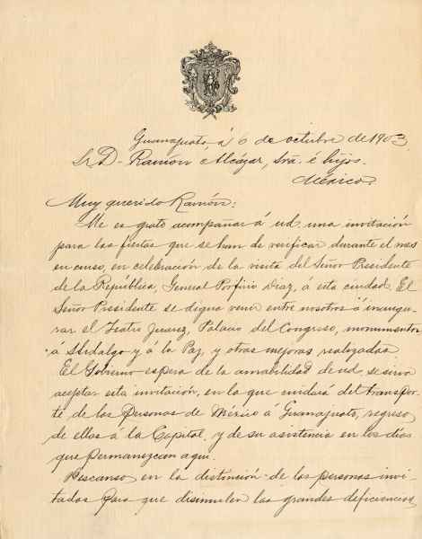 José Ramón Tomás Alcázar Castañeda (1843-1914), importante personaje de la élite guanajuatense, comerciante, banquero y gran coleccionista de antigüedades. En su pequeña colección documental podemos encontrar documentos relativos a propiedades inmuebles de la región y del centro de México, juicios y avalúos sobre dichos bienes, testamentos y procesos judiciales seguidos en torno a las propiedades, correspondencia emitida y recibida, inventarios de biblioteca personal, artículos sobre los avances en tecnología minera de la época, invitaciones a eventos sociales, participaciones, esquelas mortuorias, menús de comidas ofrecidas en distintos eventos de sociedad, programas de conciertos, bailes, fiestas, corridas de toros, obras teatrales; recortes de periódicos de la época, caricaturas políticas, mapas, boletos de rifas, de ferrocarril; dibujos, mapas, pasaportes familiares, tarjetas postales europeas y norteamericanas, fotografías familiares, partituras de música sacra, entre otros elementos.