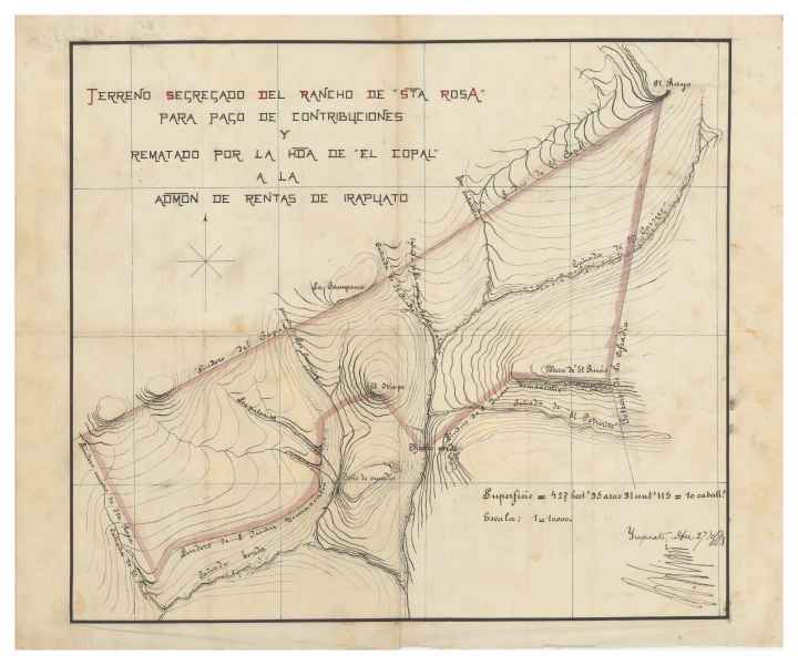 La colección incluye 167 piezas descritas de planos, mapas y croquis anexos en las escrituras de los libros notariales pertenecientes al Fondo Ayuntamiento de Guanajuato y que dan cuenta de la compraventa de minas, haciendas mineras o de labor, terrenos y solare, entre otras propiedades inmuebles.