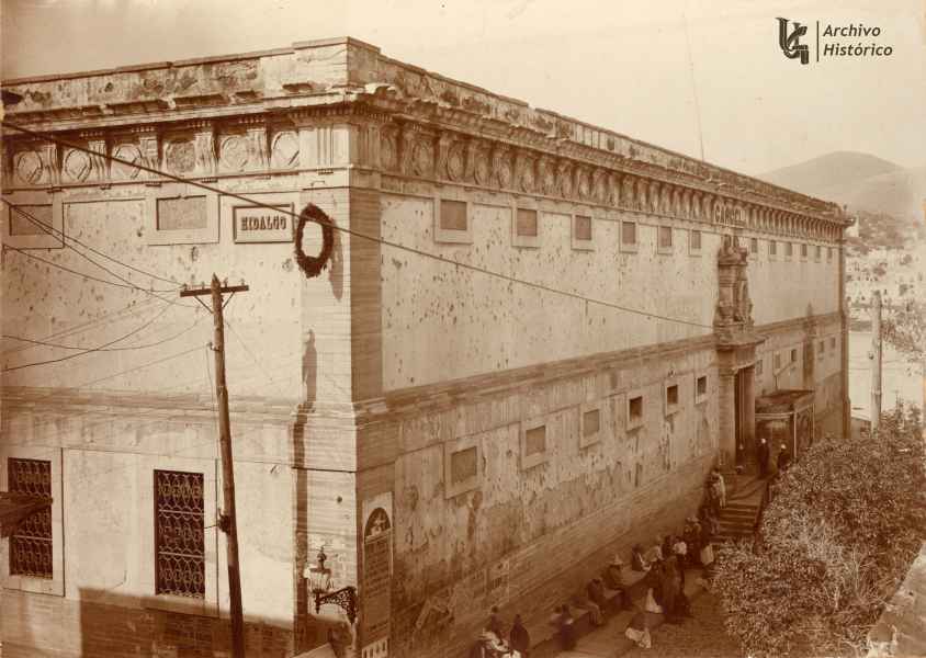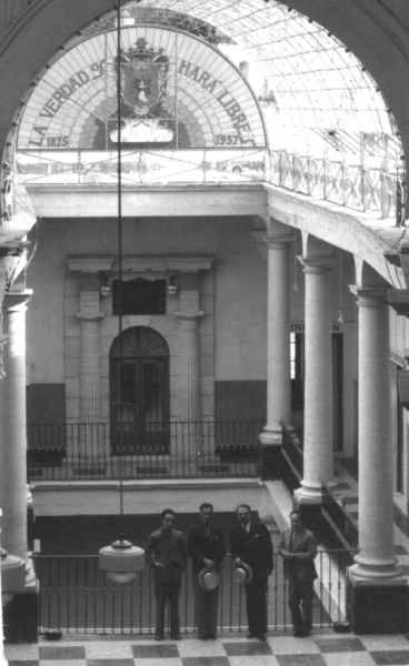 Contenido: Fotografías de Agustín Lanuza (1870-1936) -abogado, historiador, poeta y prosista guanajuatense, egresado del Colegio del Estado de Guanajuato-. Imágenes del patio de estudios del Colegio del Estado, actual patio del Departamento de Derecho de la Universidad de Guanajuato.