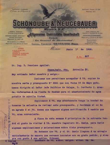 Una de las donaciones más diversas, por el tipo de materiales que contiene, es la del ingeniero Ponciano Aguilar Frías (1853-1935), misma que va de los años 1851 a 1968. El ingeniero en minería fue también catedrático del Colegio del Estado de Guanajuato –antecedente histórico de la actual Universidad de Guanajuato-, científico, constructor de importantes caminos y presas y mineralogista. Podemos conocer aspectos de las distintos ámbitos de su actividad a través de su vasta colección documental, hemerográfica y bibliográfica, al igual que de sus planos, fotografías, objetos científicos de gabinete, instrumentos de trabajo, mobiliario de hogar y algunos elementos de indumentaria de la época. La composición integral del fondo ha hecho posible el desarrollo de estudios sobre ciencia, cultura y sociedad de los siglos XIX y XX.