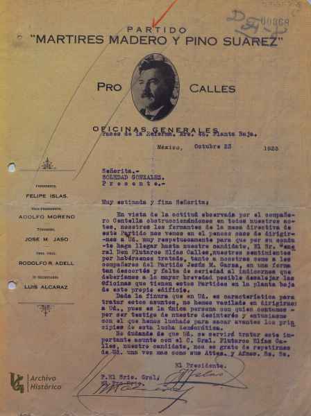 En 1993, la Universidad de Guanajuato recibe de la familia Tinajero Ayala parte del archivo personal del general Plutarco Elías Calles y de Soledad González, quien fuera secretaria particular de éste último y ascendente de los donantes así como una pequeña colección de bibliografía relativa a la época que con el paso del tiempo, el propio AHUG ha ido acrecentando. El conjunto documental tiene una cronología que abarca de 1911 a 1953, en el que podemos encontrar una gran cantidad de correspondencia del entonces presidente Plutarco Elías Calles, así como documentos varios que dan cuenta de su vida política, militar, social y familiar. Forma parte del mismo fondo una importante colección de fotografías de la época, en la que se puede apreciar las actividades de campañas políticas o militares, así como también el ámbito privado y familiar de ambos personajes.