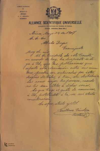 Alfred Auguste Delsescautz Dugès (1826-1910), médico francés establecido en la ciudad de Guanajuato a partir de 1861. El fondo contiene importantes documentos relacionados con su actividad como profesor del Colegio del Estado de Guanajuato tales como anotaciones y apuntes de las cátedras de Historia Natural, Zoología y Botánica. Para perfeccionar la enseñanza de dichas áreas de conocimiento, formó el Gabinete de Historia Natural, uno de los más completos del país hasta la actualidad. Asimismo, el fondo contiene testimonios de algunas de sus investigaciones y de su participación como miembro de sociedades científicas de la época.