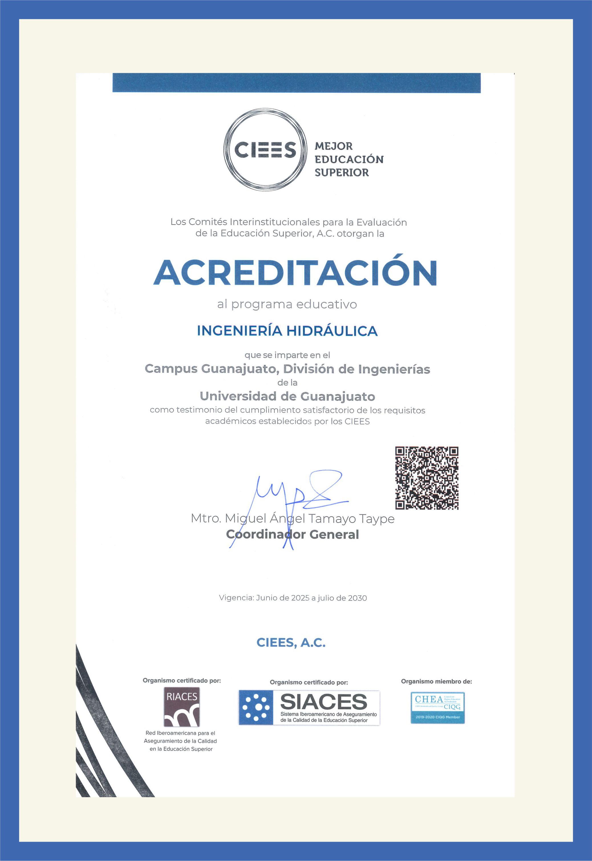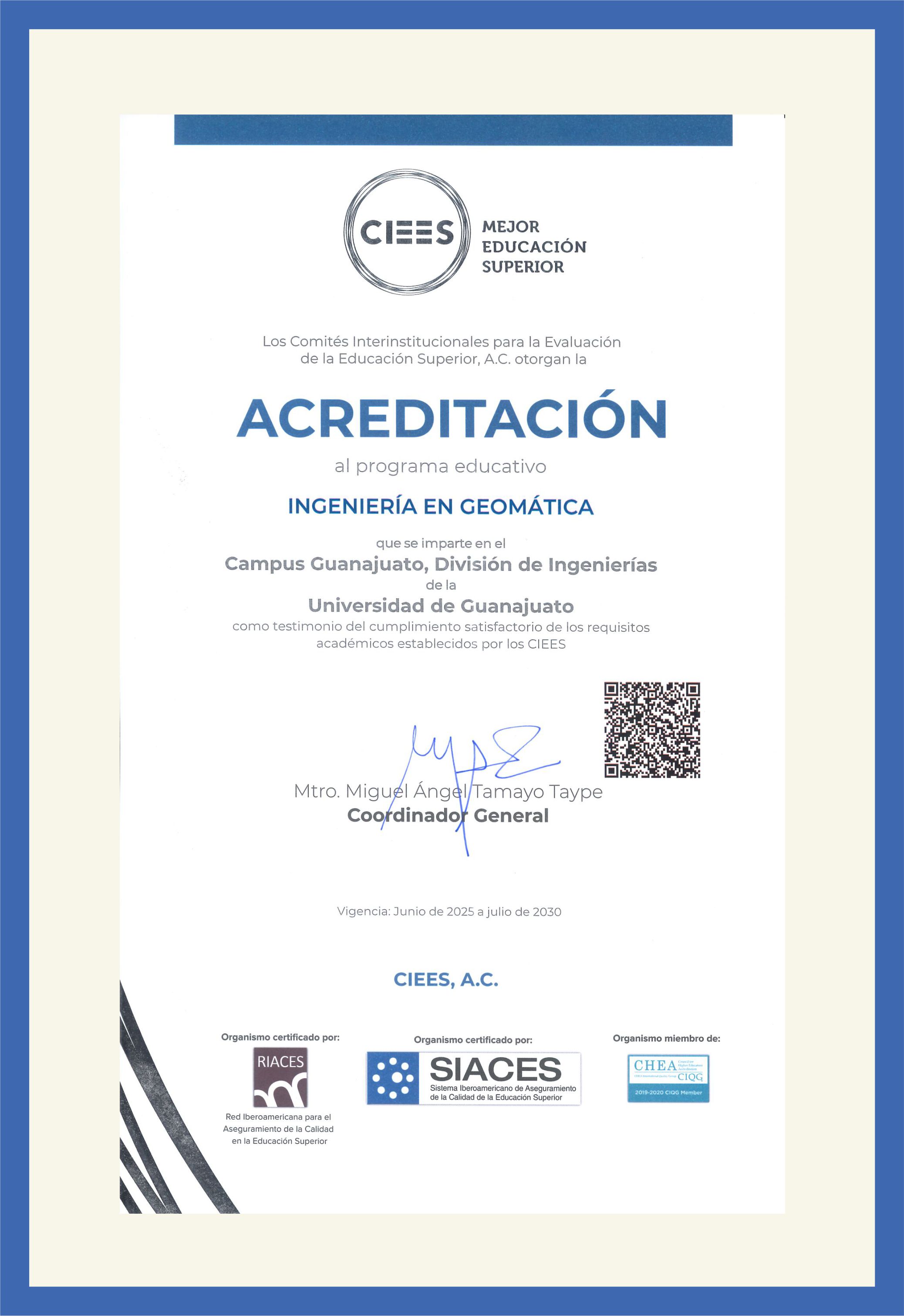 (modalidad escolarizada), Acreditación por cinco años, vigencia de junio de 2025 a agosto de 2030