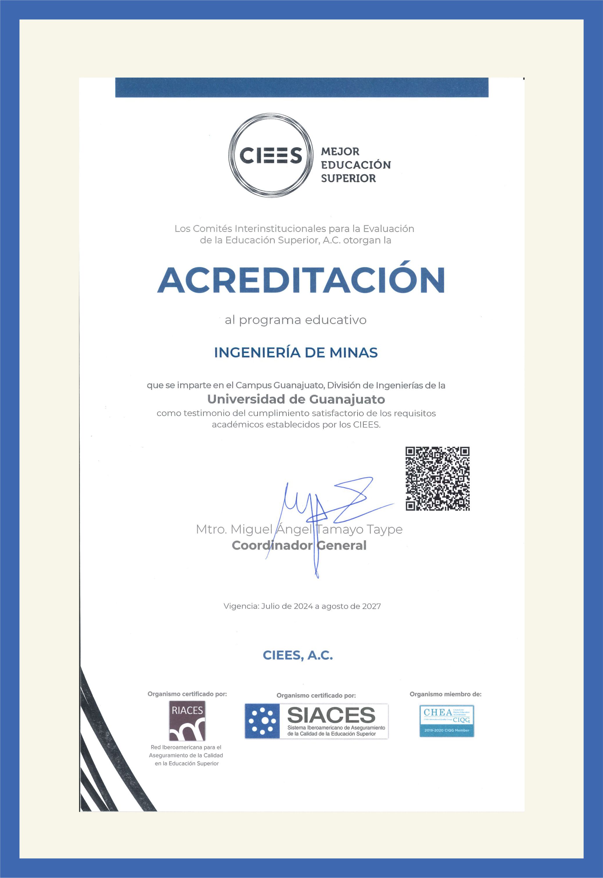 (modalidad escolarizada), Acreditación por tres años, vigencia de julio de 2024 a agosto de 2027.