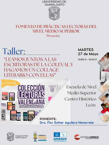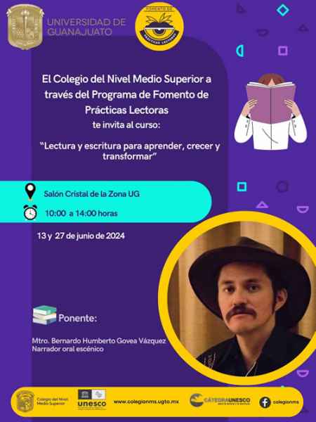 El Colegio del Nivel Medio Superior a través del Programa de Prácticas Lectoras y Centro de Escritura UG, les invita: