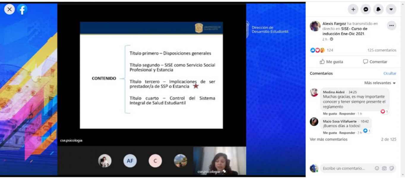 Dichas inducciones corresponden al periodo enero – junio 2021dirigidas a un aproximado de 285 personas, entre las cuales están los orientadores de las cinco áreas, coordinadores de área del SISE, Coordinadores de Desarrollo Estudiantil de los campus, entre otros.