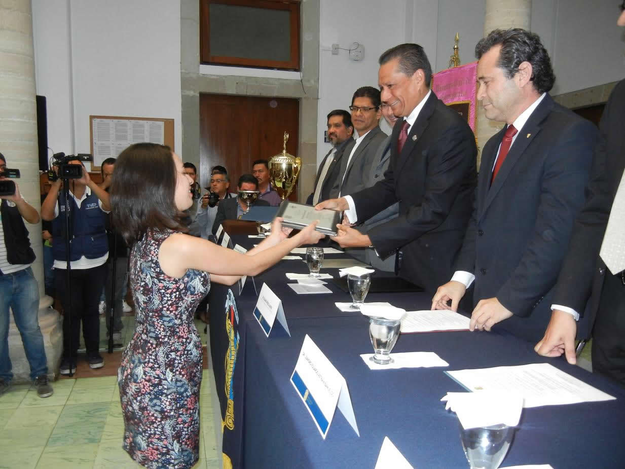 At the ceremony were present: DDPG's Academic Secretary, Dr. Ricardo Rodríguez Luna; the Director of the Department of Public Management, Dr. Fernando Díaz Pérez; and the Director of the Department of Political Studies and Government, Dr. Carlos Román Cordourier Real.