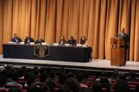 At the presidium, were also present the Academic Secretary of Campus Guanajuato, Dr. Claudia Gutiérrez Padilla; the Director of the Division of Architecture, Art and Design, Dr. Francisco Javier González Compean; and Dr. Salvador Salas as another project overseer.