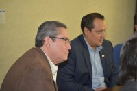 At the reunion were present: Dr. Jorge Alberto Romero Hidalgo, Secretary of Management and Development of the University of Guanajuato; Dr. Francisco Javier Magos Vázquez, General Director of Health; Dr. Luis Carlos Zúñiga Durán, General Director of Sanitary Risks; Lic. Fernando Reynoso Márquez, from the General Administrative Coordination of the Department of Health; Dr. Tonatiuh García Campos, Director of the Division of Health Sciences of Campus Leon of UG; Dr. Pablo Campos Macías, Director of the Department of Medicine and Nutrition; Dr. Elia Lara Lona, Coordinator of the educational program of Medical Surgeon and Nutrition and the Architect Jorge Meza Rangel, Coordinator of the Unit of Infrastructure and Maintenance of Campus Leon.