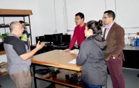Enrique Marumoto Torres, an specialist advisor in topics of innovation, Edgar Valdés Huerta and America Irene López Lozano both technical coordinators of the Center of Business Intelligence and Innovation of Canacintra León gathered in the Division of Sciences and Engineering of Campus León to know the research lines, installations and equipment the laboratory of Biomagnetism and Magneto biology has, as well as the Ultrasound Laboratory, Laboratory of Medical Applications of the Bioelectric Impedance and the Biomedical Engineering Laboratory.