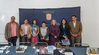 As assistants to the press conference were Dr. Ileana Landeros Casillas from the Universidad de Guadalajara and author of the exhibition "Tiempo Cero"; Lic. Jovana Sixtos González, Coordinator of the degree in Social Anthropology of Campus León of UG; Dr. Carlota Meneses Sánchez, Professor-researcher of the Department of Cultural Studies of the same campus and who would serve together with students of culture and art as curator of the exhibition; the engineer Carlos Hernández Guerrero, Director of Cultural Management "Casa Azul"; the Eng. Alfredo Mozqueda, Liaison the Northeastern Interdisciplinary center of the University of Guanajuato; Lic. Misraim Macías Cervantes, General Director of the Municipal Youth Institute of León and Christian Vilches- Lizardi, Director of The Kino Cultural Center.