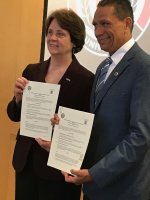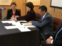 The president of SOU, Dr. Linda Schott at the brotherhood renewal ceremony, said, "Today's agreement is to reaffirm our commitment to the exchange of students and teachers." Subsequently Dr. Guerrero Agripino and Dr. Scott signed the collaboration agreement between the two institutions and asserted that they are committed to building an even stronger relationship.