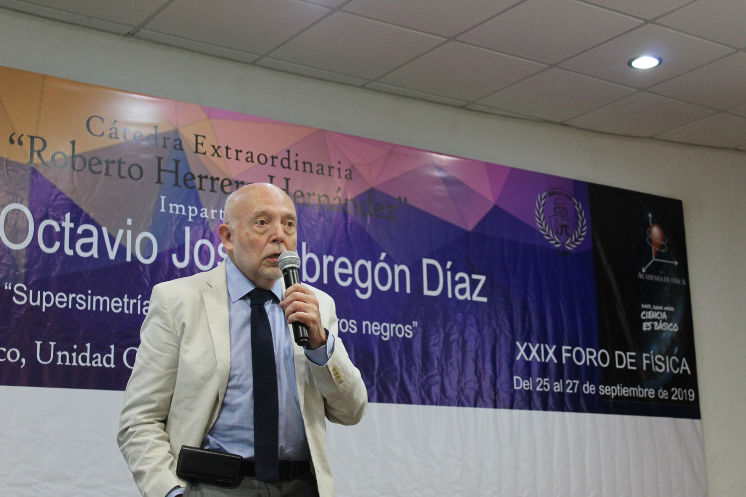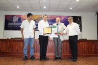 León, Gto., September 27, 2019.- For his outstanding contributions in the field of physics, especially in the applications of supergravity in quantum cosmology, the Universidad Juárez Autónoma of Tabasco distinguished Dr. Octavio José Obregón Díaz, professor emeritus of the University of Guanajuato (UG) by dictating the extraordinary masterclass "Roberto Herrera Hernández" within the framework of the XXIX Forum of Physics.
