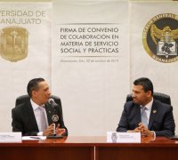 Guanajuato, Gto., October 22, 2019.- With the signing of an agreement between the University of Guanajuato (UG) and the Attorney General's Office of the State of Guanajuato (FGE), headed by the holders of both institutions, the collaboration in the field of social service and professional practices was formalized.