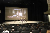 At the end of the movie projection, there was a dialogue between Peter Greenaway, Elmer Bëck and Luis Alberti –feature actors of the movie—with the viewers, who could express their impressions and questions about "Eisenstein in Guanajuato".