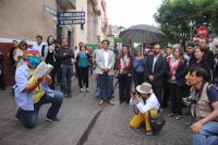 This event occurred with a tour by the "Circuit of the Word: Between letters from Cervantes" from Teatro Juarez to Teatro Cervantes, harmonized by the Estudiantina from the University of Guanajuato and continuous stops with artistic reflexes of the play of Manco de Lepanto.