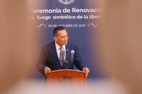 Como ya es tradición, en la ceremonia, además de encender el fuego simbólico de la libertad, se depositó una ofrenda floral, se realizó una guardia de honor y el toque de silencio.