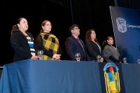 Al finalizar la ceremonia se contó con la participación de la Mtra. María de la Luz Aguiñaga Zamarripa quien presentó la conferencia "Trayectoria de Enfermería hacia puestos gerenciales" y finalmente la Dra. Luxana Reynaga Ornelas presentó el tema "Trascendencia de la investigación de la Enfermería".