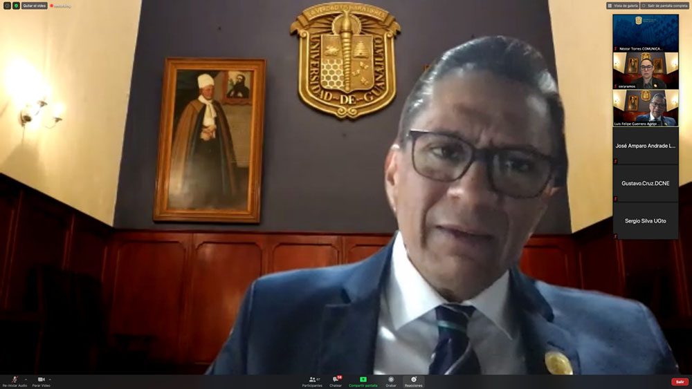 Guanajuato, Gto., a 15 de agosto de 2020.- En sesión extraordinaria del Consejo General Universitario (CGU) previa al inicio del semestre agosto-diciembre, autoridades de la Casa de Estudios dieron cuenta de la gama de apoyos institucionales que se ha puesto a disposición de la comunidad afectada por el impacto económico de la pandemia.