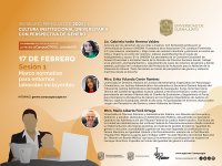Guanajuato, Gto., a 17 de febrero de 2021.- El "Marco Normativo para los Entornos Laborales Incluyentes", fue el tema de la primera sesión del Seminario Permanente 2021 de Cultura Institucional Universitaria con perspectiva de género, que auspicia el Campus Guanajuato de la Universidad de Guanajuato (UG) a través de su Enlace de Género.