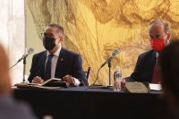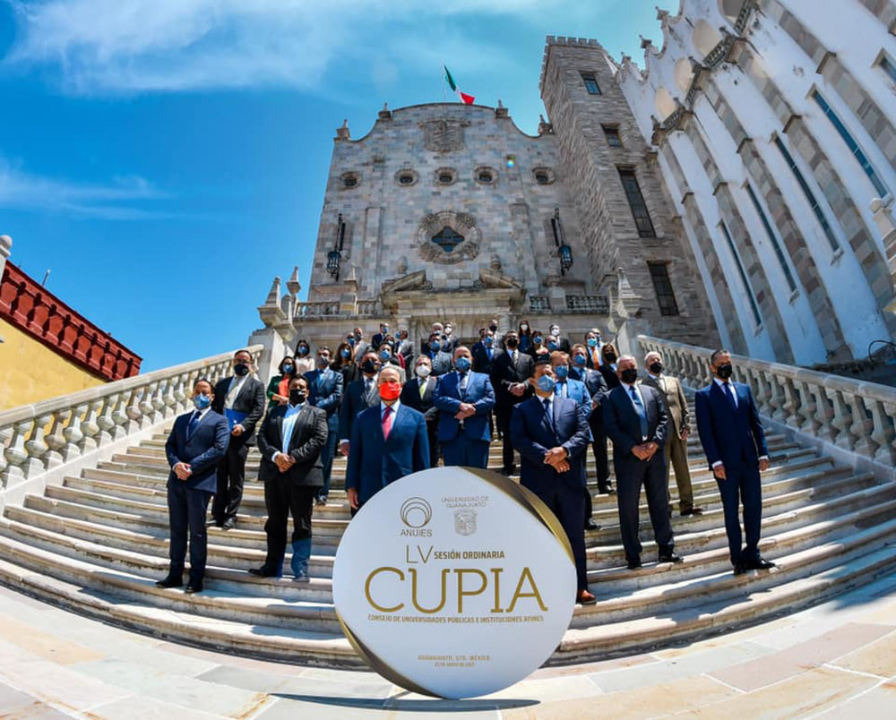 Guanajuato, Gto., a 25 de mayo de 2021.- Teniendo como sede la Universidad de Guanajuato (UG), se realizó con un formato híbrido la LV Sesión Ordinaria del Consejo de Universidades Públicas e Instituciones Afines (CUPIA), evento que marcó el inicio del retorno gradual a las actividades presenciales administrativas y de gestión en la Casa de Estudios.