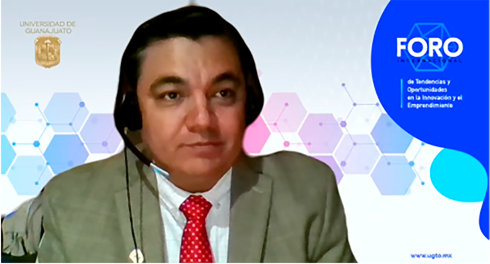 Silao, Gto., a 21 de junio de 2021.- Con una participación de autoridades universitarias, docentes, estudiantes nacionales e internacionales, la Universidad de Guanajuato a través del Ecosistema de Vinculación Innovación, Desarrollo y Aplicación del Conocimiento de la Universidad de Guanajuato (VIDA UG), llevó a cabo el "Foro Internacional de Tendencias y Oportunidades en la Innovación y el Emprendimiento" en un evento virtual encabezado por el Dr. Elías Rigoberto Ledesma Orozco, Director de Relaciones Internacionales y Colaboración Académica, en representación del Dr. Sergio Antonio Silva Muñoz, Secretario Académico.