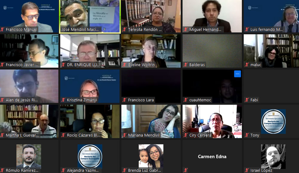 Enseguida el Dr. Luis Fernando Macías García, profesor del departamento de Filosofía e invitado especial del Dr. Mendívil, refirió anécdotas y vivencias del carácter del homenajeado; quien a su vez agradeció las palabras de sus colegas y amigos, y adelantó que se jubila de la burocracia universitaria, pero no de la filosofía ni de la investigación, por lo cual seguirá vinculado a la UG.