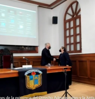 Al finalizar la conferencia, la Dra. Teresita de Jesús Rendón Huerta Barrera hizo entrega de una constancia de participación y agradecimiento al catedrático, por su interesante ponencia que forma parte de la educación a distancia y podrá ser consultada en las redes sociales de la Universidad de Guanajuato.