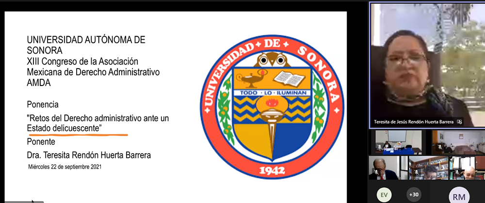 Guanajuato, Gto., 24 de septiembre de 2021.- En su calidad de Presidenta de la Asociación Internacional de Derecho Administrativo (AIDA), la Dra. Teresita de Jesús Rendón Huerta Barrera, Rectora del Campus Guanajuato de la Universidad de Guanajuato participó como conferencista en el XIII Congreso Mexicano de Derecho Administrativo en homenaje al Dr. Jorge Fernández Ruiz.