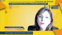 Por su parte, la Mtra. Margarita López Maciel, Defensora Titular de los Derechos Humanos en el Entorno Universitario y jurado del concurso, agradeció que sea el Colegio el impulsor de dar a conocer los derechos humanos de las y los adolescentes, escuchando a su comunidad para darles la oportunidad de que conozcan y hagan propios los derechos humanos.