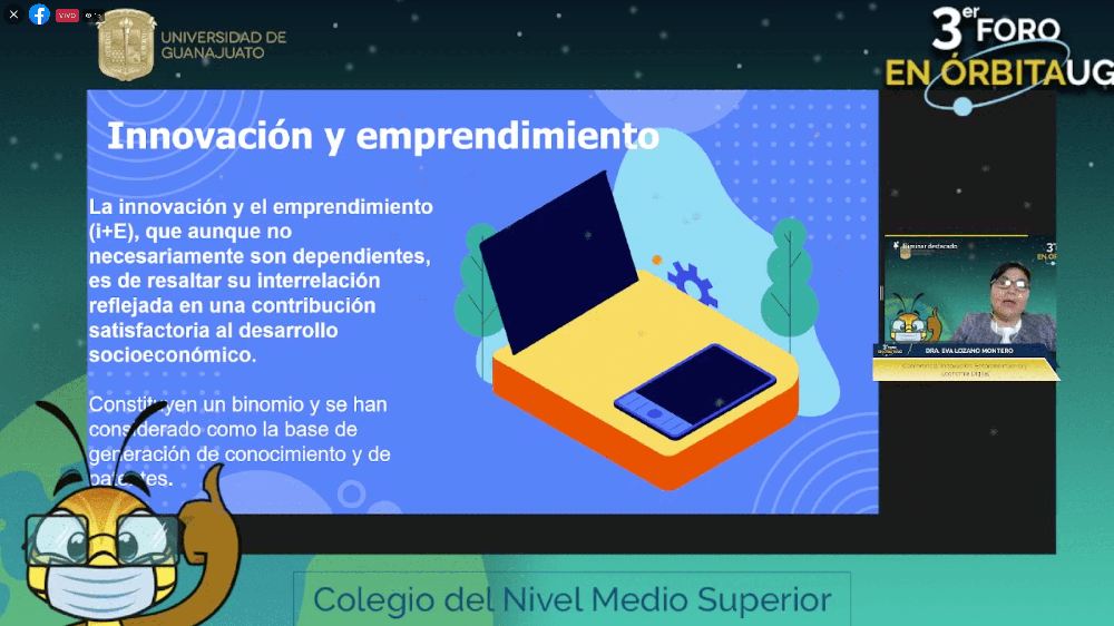Guanajuato, Gto., a 4 de noviembre de 2021.- Por tercer año consecutivo se llevó a cabo el Foro en Órbita UG bajo el tema "Experiencias de fomento al emprendimiento e innovación para estudiantes del Nivel Medio Superior en tiempos del COVID-19 (modalidad virtual)".