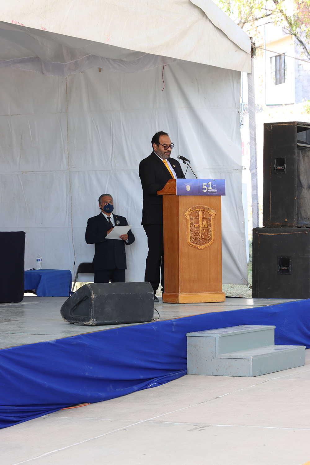 Para conmemorar dicho aniversario se llevó a cabo un evento en el que el Dr. Jesús Raúl Lugo Martínez, Secretario Académico del Colegio del Nivel Medio Superior (CNMS), en representación del Dr. J. Merced Rizo Carmona, Director del CNMS brindó unas palabras a toda la comunidad universitaria, en las que agradeció y felicitó a las y los profesores, a las y los estudiantes, que han sido talentos en una época muy difícil en donde tuvieron que adaptarse a las circunstancias. Mencionó que en este año se destaca el trabajo de docentes, estudiantes y personal administrativo, quienes le dan el sentido a la misión en la UG.