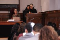 También aludió a las primeras revolucionarias de la modernidad y cómo la causa feminista es la causa de cada mujer y de más y más mujeres por la construcción de su dignidad humana y de su libertad, en una clara referencia a la Dra. Marcela Lagarde y de los Ríos.