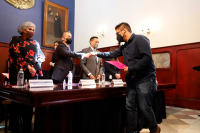 Durante la ceremonia de clausura de este taller, el Rector General de la UG, Dr. Luis Felipe Guerrero Agripino, destacó la función de las personas que ejercen el periodismo en los tiempos actuales, en un mundo globalizado, y reflexionó sobre el cómo hacer periodismo en un mundo diverso y complejo y cómo realizar esta función desde los Derechos Humanos, con perspectiva de género, y luchando por los derechos de las mujeres.
