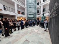 Durante el acto de reapertura del Patio del Hospicio de la Santísima Trinidad, Ana Sofía Varela Llamas e Ignacio Antonio Morales Castillo compartieron algunas de los aniversarios que se conmemorarán en la UG en este 2022, entre estos los 70 años de la inauguración de las Escalinatas y el Auditorio General del emblemático Edificio Central de la UG, que se celebrarán el 16 de febrero.
