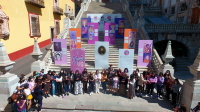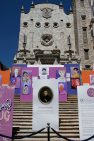 Guanajuato, Gto., a 03 de marzo de 2022.- Se inauguró en la Escalinata del Edificio Central la muestra "Las mujeres en la UG", una serie de retratos e ilustraciones realizados por alumnas, con los que se rinde homenaje a universitarias que han trascendido en la historia en la Institución.