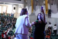 Guanajuato, Gto., a 03 de marzo de 2022.- En un espacio que llamó a cuestionar, analizar y reflexionar, como parte de la agenda de eventos y actividades por la conmemoración del 8M, la activista e impulsora de los derechos de las mujeres, Olimpia Coral Melo Cruz impartió una charla a cientos de alumnas de la Universidad de Guanajuato (UG).