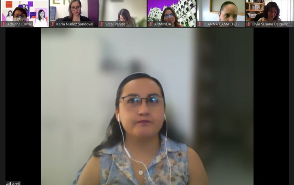 "Mujeres y luchas por la vida: un análisis de los procesos psicosociales vinculados a la defensa del territorio", impartida por la Dra. Susana Delgado Rodríguez de la Universidad de Guadalajara (UdeG) quien habló sobre cómo comprender los procesos subjetivos que viven las mujeres defensoras del territorio y de la vida, desde una perspectiva de género e interseccional que permitan visibilizar su lucha.