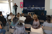 El conversatorio estuvo moderado por Sandra Yazmín Méndez Yepez, estudiante de Psicología Clínica; y como invitadas estuvieron: Teresa Blanca Icela Guzmán Zamudio, primera Vicepresidenta del Consejo Directivo de AMEXME Capítulo Moroleón, Uriangato y Yuriria; Alicia Camarena Ramírez, Directora de Capacitación; y María Inés Hernández Rodríguez, Asociada.