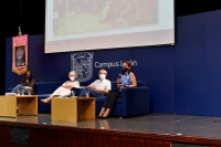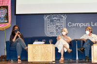 León, Gto., a 13 de mayo de 2022.- Con la finalidad de abrir un espacio de diálogo y reflexión acerca de la alimentación y salud alimentaria en el país, se llevó a cabo la presentación editorial "Alimentarnos con dudas disfrazadas de ciencia: nutriendo conflictos de interés en México", de la autoría de Martha Elena García y Guillermo Bermúdez, en el auditorio Jorge Ibargüengoitia de la sede Forum del Campus León de la Universidad de Guanajuato (UG).