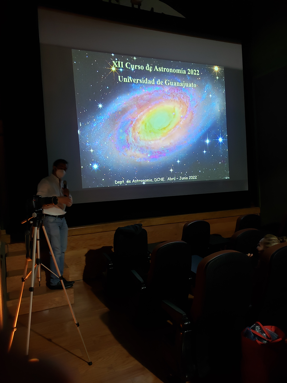 Guanajuato, Gto., a 13 de mayo de 2022.- Con temáticas que van desde: ¿Qué es la luz?, las misiones espaciales, estrellas y galaxias, hasta la búsqueda de vida extraterrestre, se lleva a cabo la XII edición del Curso de Astronomía, el cual está dirigido a profesore/as y público en general.