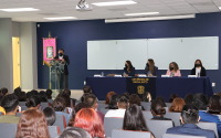 En su mensaje, la Dra. Isaura Arreguín Arreguín, Directora de la División de Ciencias de la Salud e Ingenierías, exhortó a la comunidad de estudiantes de Psicología a orientar, apoyar y resolver de manera profesional los padecimientos emocionales, afectivos o conductuales de las personas, a través de los valores y respeto.
