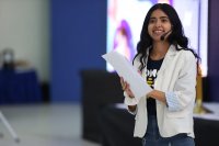 Finalmente, en representación de la comunidad estudiantil, María Judith Navarro Silva, alumna del Campus Irapuato-Salamanca externó su orgullo al pertenecer a una entidad que trabaja para su comunidad universitaria, reflexionó sobre cómo fue desarrollar su vida académica durante la pandemia, etapa en la que se enfocó en buscar áreas de oportunidad. Así nació el proyecto "Mi nueva amiga abeja" que permitió obtener un sentido de pertenencia UG a las y los nuevos integrantes universitarios, con tutores de otras generaciones, beneficiando a más de 1 mil 500 estudiantes, por lo que agradeció el apoyo de las autoridades a este proyecto.