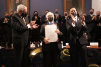 Guanajuato, Gto., a 8 de junio de 2022.- A manera de reconocimiento por sus extraordinarias contribuciones en el ámbito jurídico y en defensa de los derechos humanos, la Universidad de Guanajuato (UG) otorgó el Doctorado Honoris Causa al destacado investigador mexicano, Dr. Sergio García Ramírez.