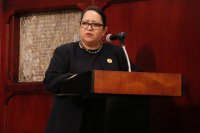 Correspondió a la académica de la UNAM, Dra. Xóchitl Padilla Sanabria, dar lectura al Laudatio del Dr. Sergio García Ramírez, a quien calificó como un "ejemplo de vocación, constancia, perseverancia y sapiencia".
