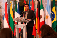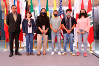 Comentó que derivado de la pandemia, como estudiantes ha sido difícil reunirse en el aula como antes, además de tener límites en los intercambios, por lo que este evento representa para él un milagro, por esto, invitó a sus compañeros y compañeras a dar lo mejor de sí en el estudio, sin olvidar el disfrutar de los nuevos lugares y las personas.