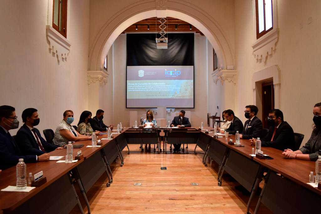Guanajuato, Gto., a 11 de agosto de 2022.- Con el objetivo de coordinar actividades que permitan el fortalecimiento de una cultura de la transparencia, del ejercicio de los derechos de acceso a la información pública y de protección de datos personales, así como promoción de Gobierno y Academia Abierta, firmaron un convenio de colaboración de la Universidad de Guanajuato (UG) y el Instituto de Acceso a la Información Pública para el Estado de Guanajuato (IACIP).