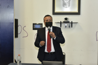 León, Gto., a 06 de septiembre de 2022.- Con el objetivo de analizar de manera multidisciplinaria los fenómenos sociales que ocurren en México, la Universidad de Guanajuato (UG) Campus León fue sede de la conferencia "La psicología del mexicano y la corrupción" impartida por el Dr. Tonatiuh García Campos, Director de la División de Ciencias de la Salud de este campus universitario.
