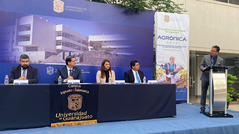 Irapuato, Gto. a 19 de octubre de 2022.- La agricultura 4.0, la innovación, tecnología y el futuro del campo con la agricultura 5.0, son los temas de estudio del II Congreso Internacional de Ingeniería Agrónica que se realiza en la División de Ciencias de la Vida de la Universidad de Guanajuato (UG).